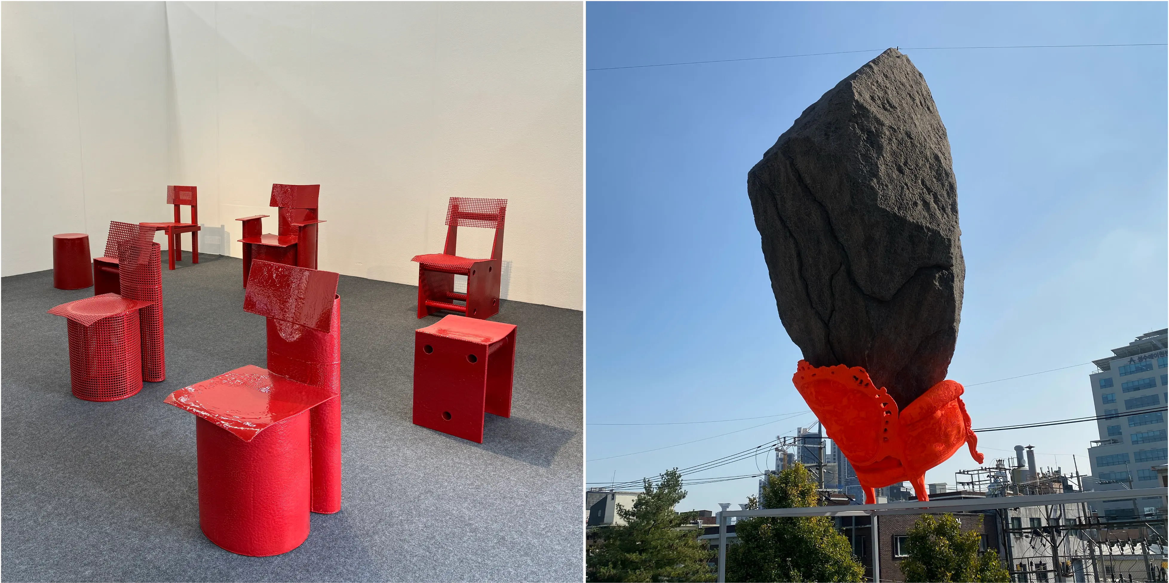 특별전 FEATURE가 전시장 곳곳에서 기다려요. 아뜰리에 오이와 음악인 박지하가 만난 대형 사운드 설치작 ‘시네마티카’부터 위성 전시장 Y173에서 만날 수 있는 가구 디자이너 하지훈의 산등성이 같은 의자 ‘Jari’까지, 한국 고유의 멋과 현대적 미를 아우르는 작품을 만날 수 있답니다.