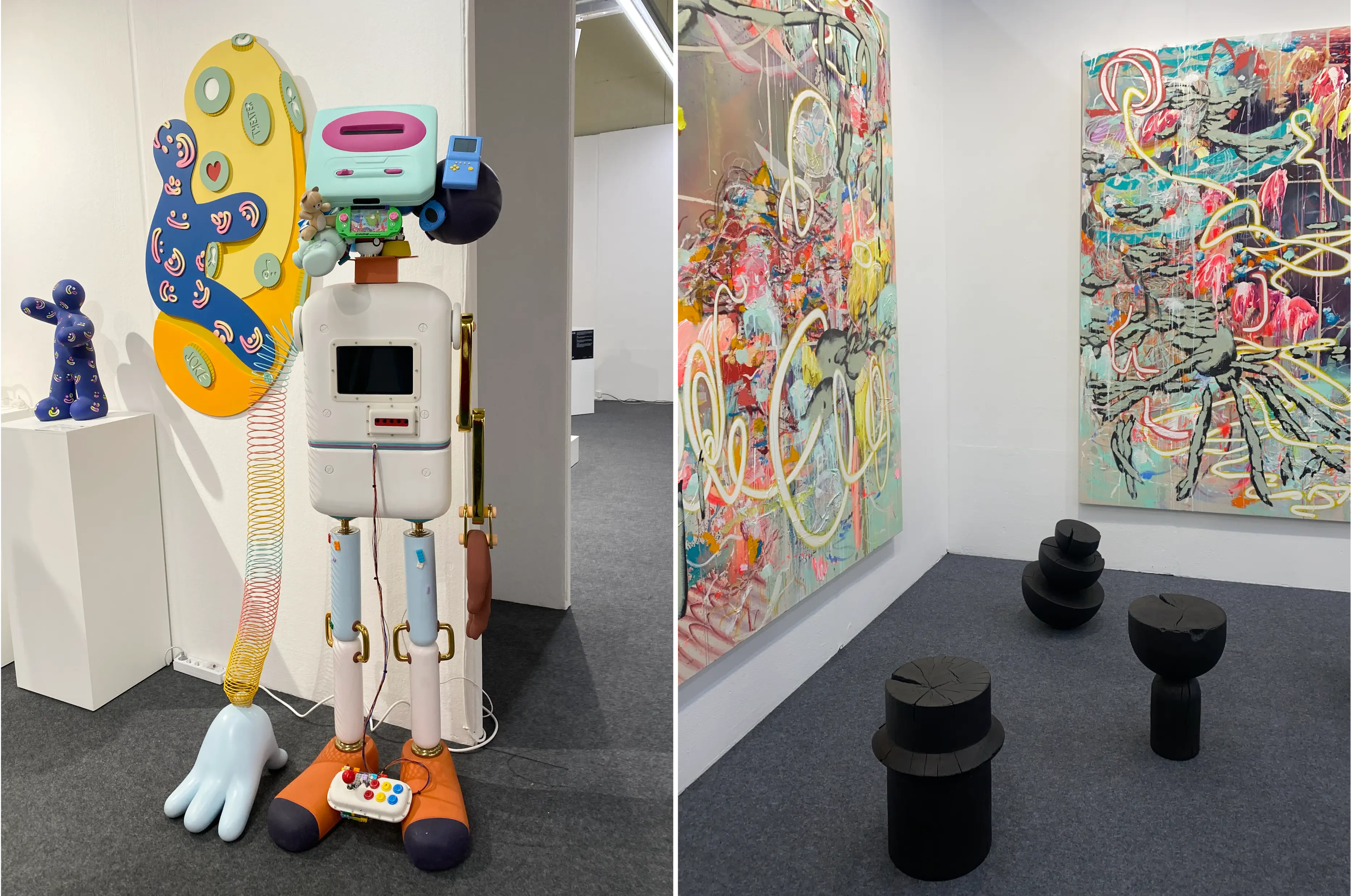 우: 정윤경 작가의 추상화와 임정주 작가의 목공예 작업으로 꾸린 야리 라거 갤러리 ©b.frame