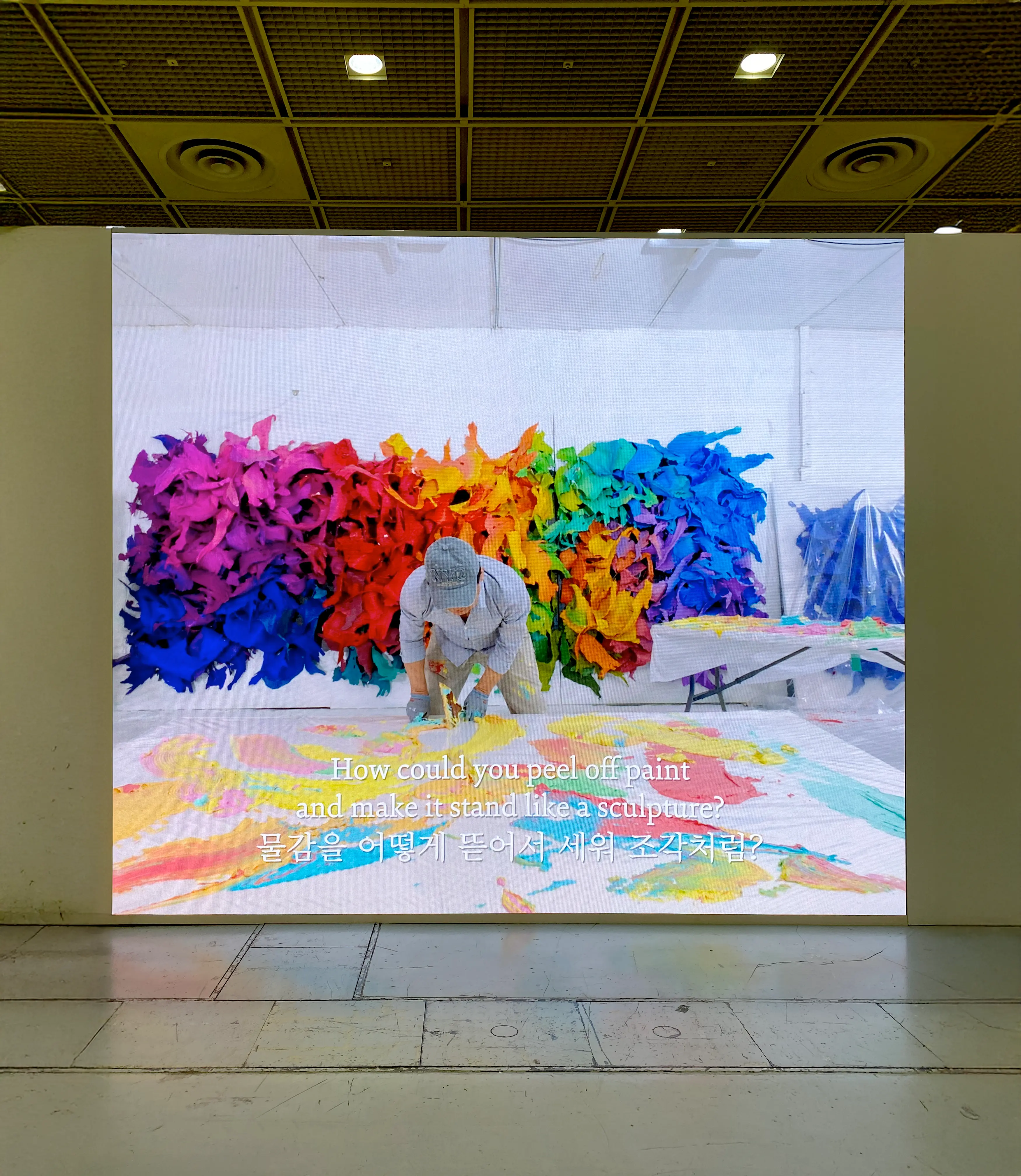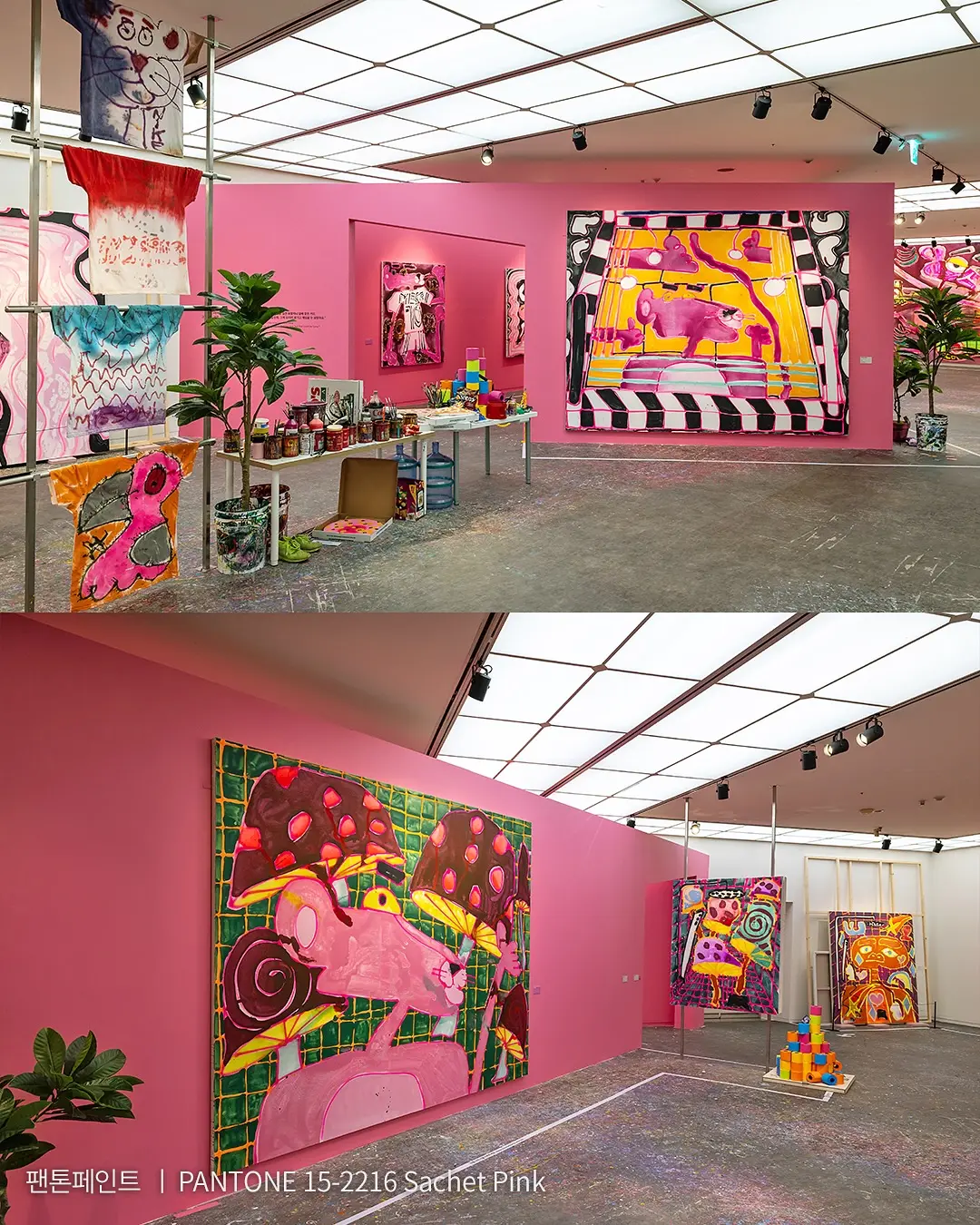 여담으로 예술의 전당에서 열렸던 캐서린 번하드 전시에는 핑크와 버터옐로 컬러를 사용했는데요. 기존 전시장에 한 번도 사용한 적 없는 컬러라며 작가도 무척 마음에 들어 했어요.